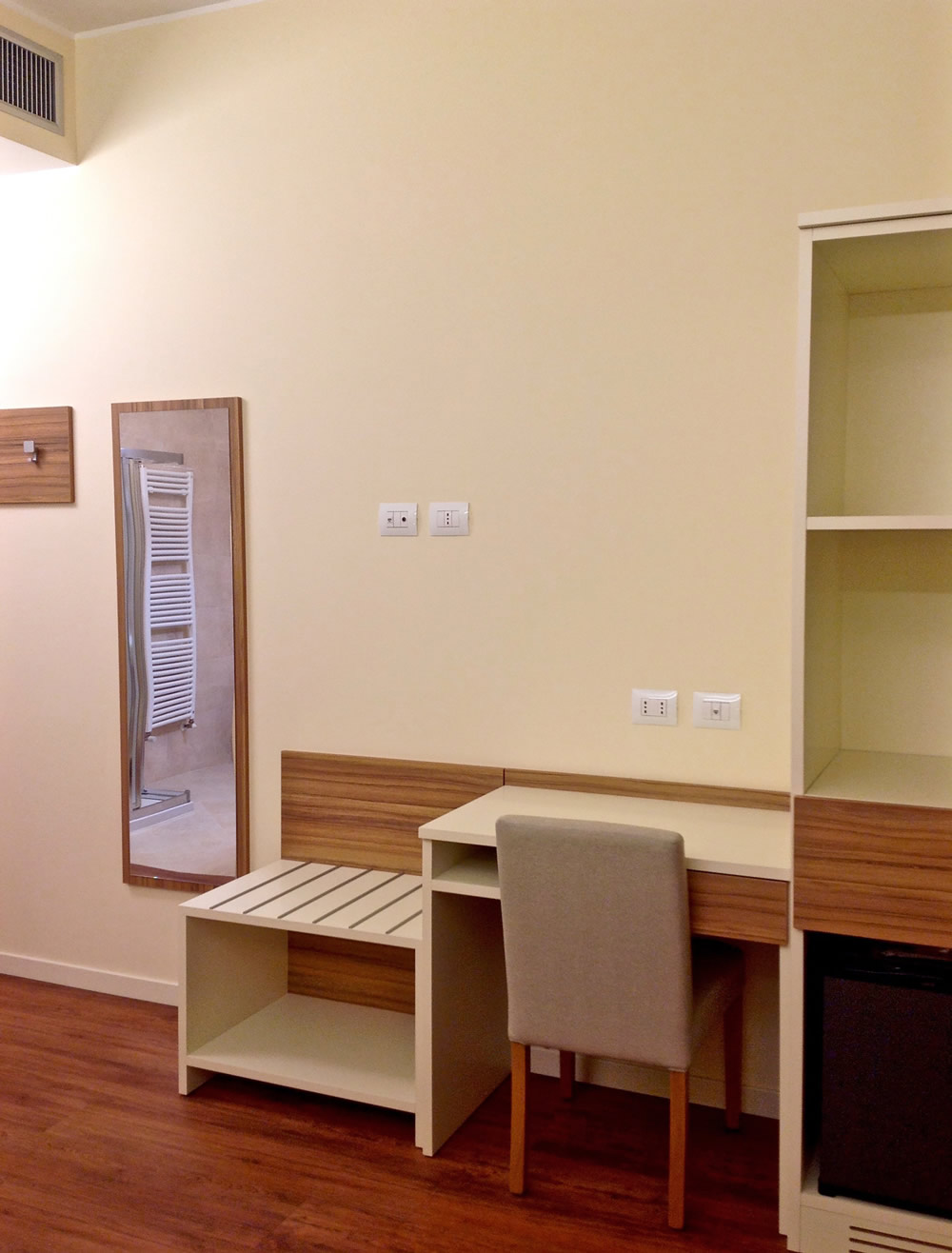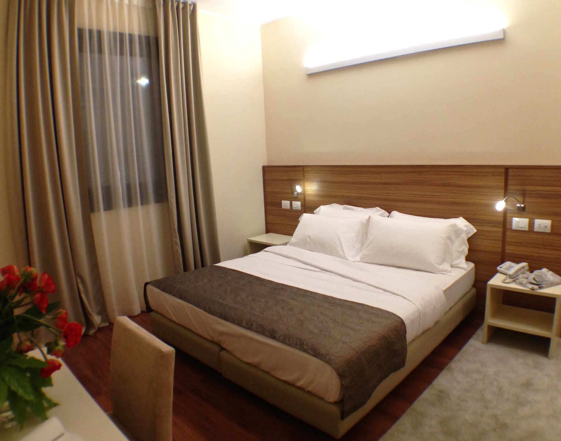 Due Camere Comunicanti, 4 posti letto, singoli o matrimoniali, 2 bagni con con doccia, specchio ingranditore regolabile, linea di cortesia; Minibar, scrivania, cassaforte, Climatizzazione regolabile, 2TV a schermo piatto 32", WIFI Gratuito. Ideali per famiglie con bambini.